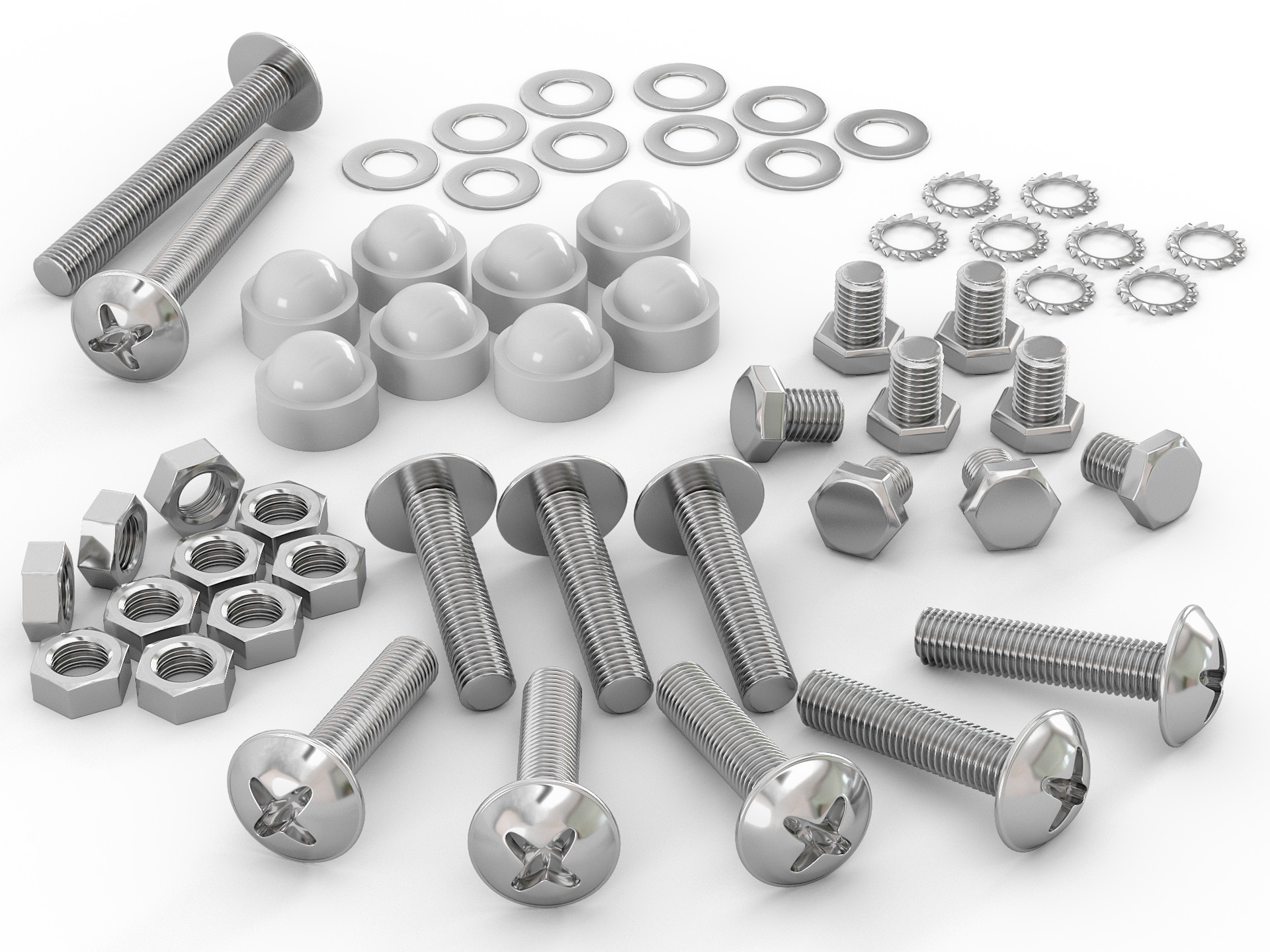 Винт 5.0 - 2 шт; Винт 3.0 - 8 шт; Болт - 8 шт; Стопорная шайба - 8 шт; Шайба - 10 шт; Гайка - 10 шт; Колпачок белый - 8 шт.