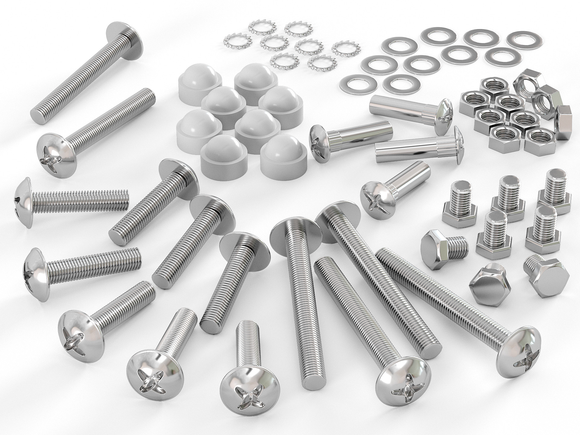 Винт 5.0 - 2 шт; Винт 3.0 - 8 шт; Болт - 8 шт; Стопорная шайба - 8 шт; Шайба - 10 шт; Гайка - 10 шт; Винт 6.0 - 4 шт; Стяжка - 4 шт; Колпачок белый - 8 шт.