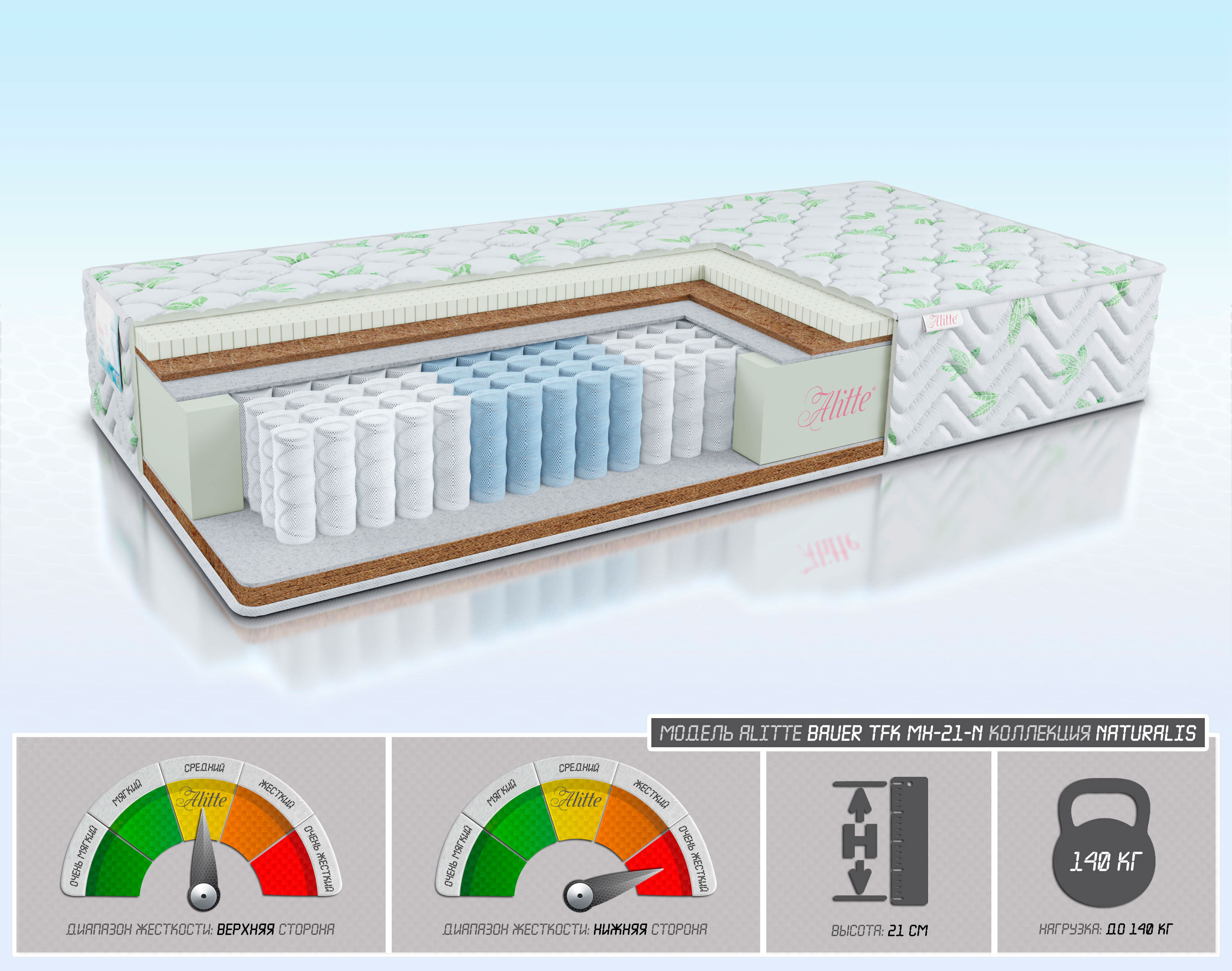 | Наполнение | Latex-3/Cocos-1/войлок/TFK-14(5 зон)/войлок/ Cocos-3 | |
