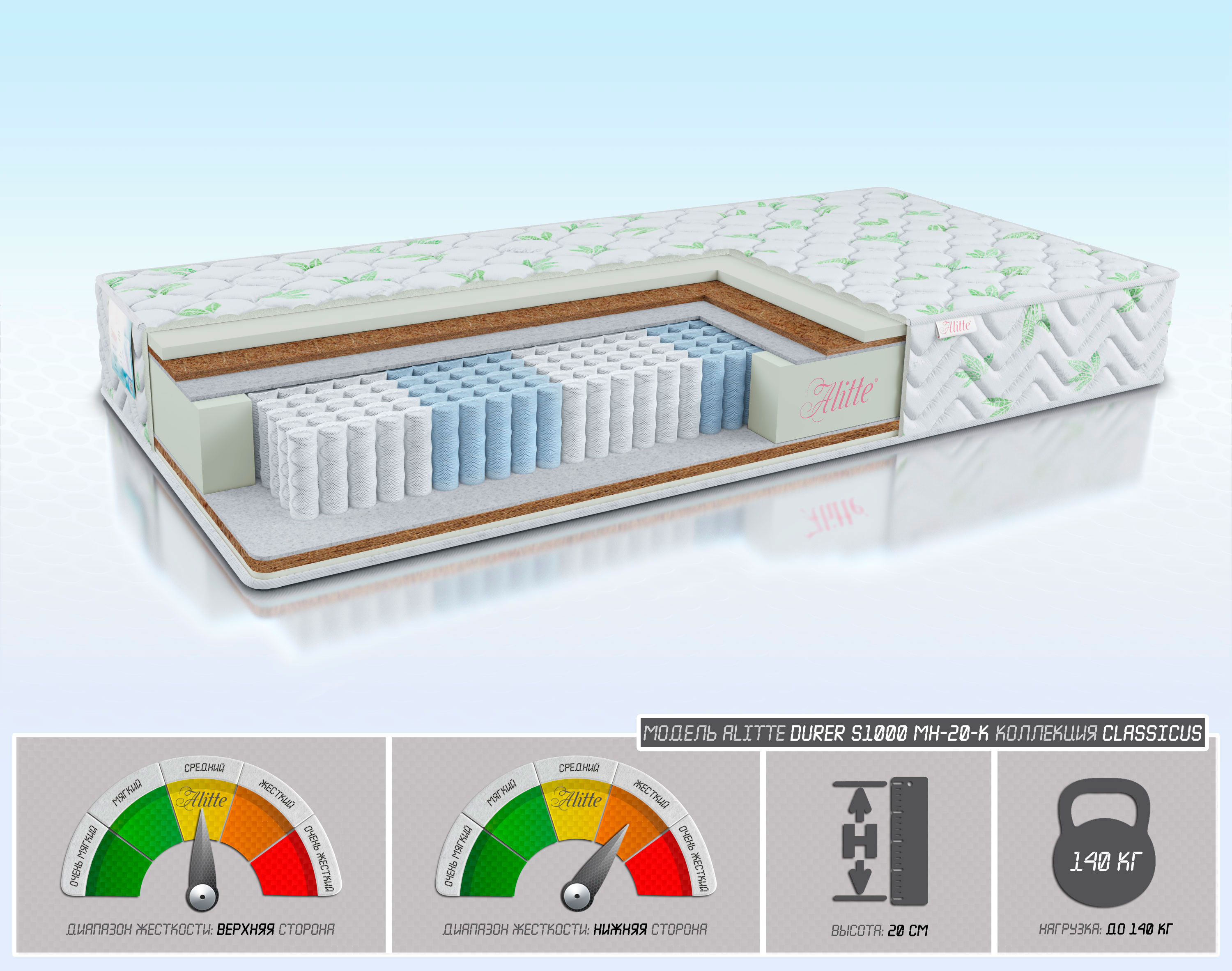 Наполнение Latex-Foam-2/Cocos-1/войлок/S1000-14(5 зон)/ войлок/Cocos-2/Latex-Foam-1
