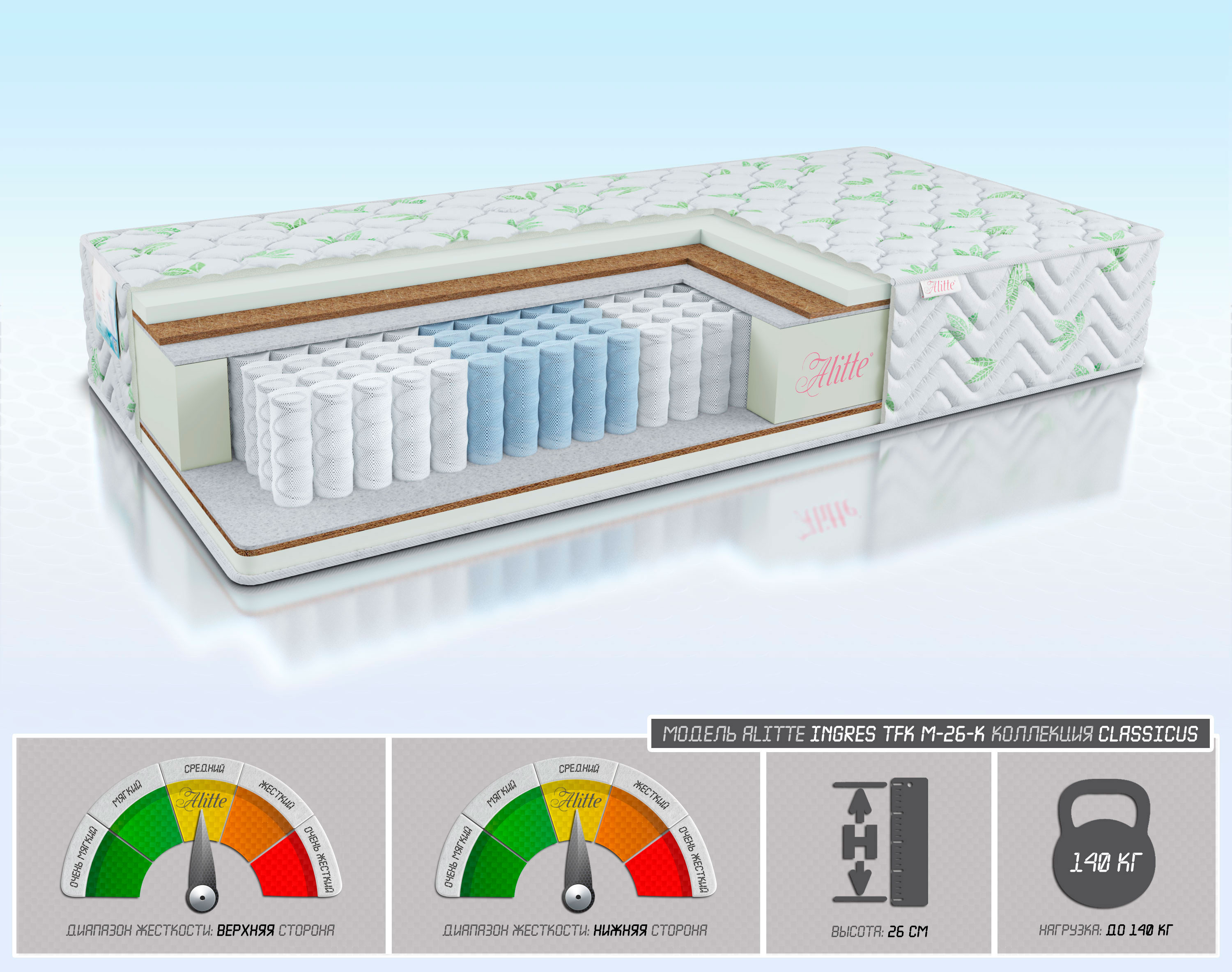 | Наполнение | Latex-Foam-3/Cocos-1/войлок/TFK-18(5 зон)/ войлок/Cocos-1/Latex-Foam-3 | |