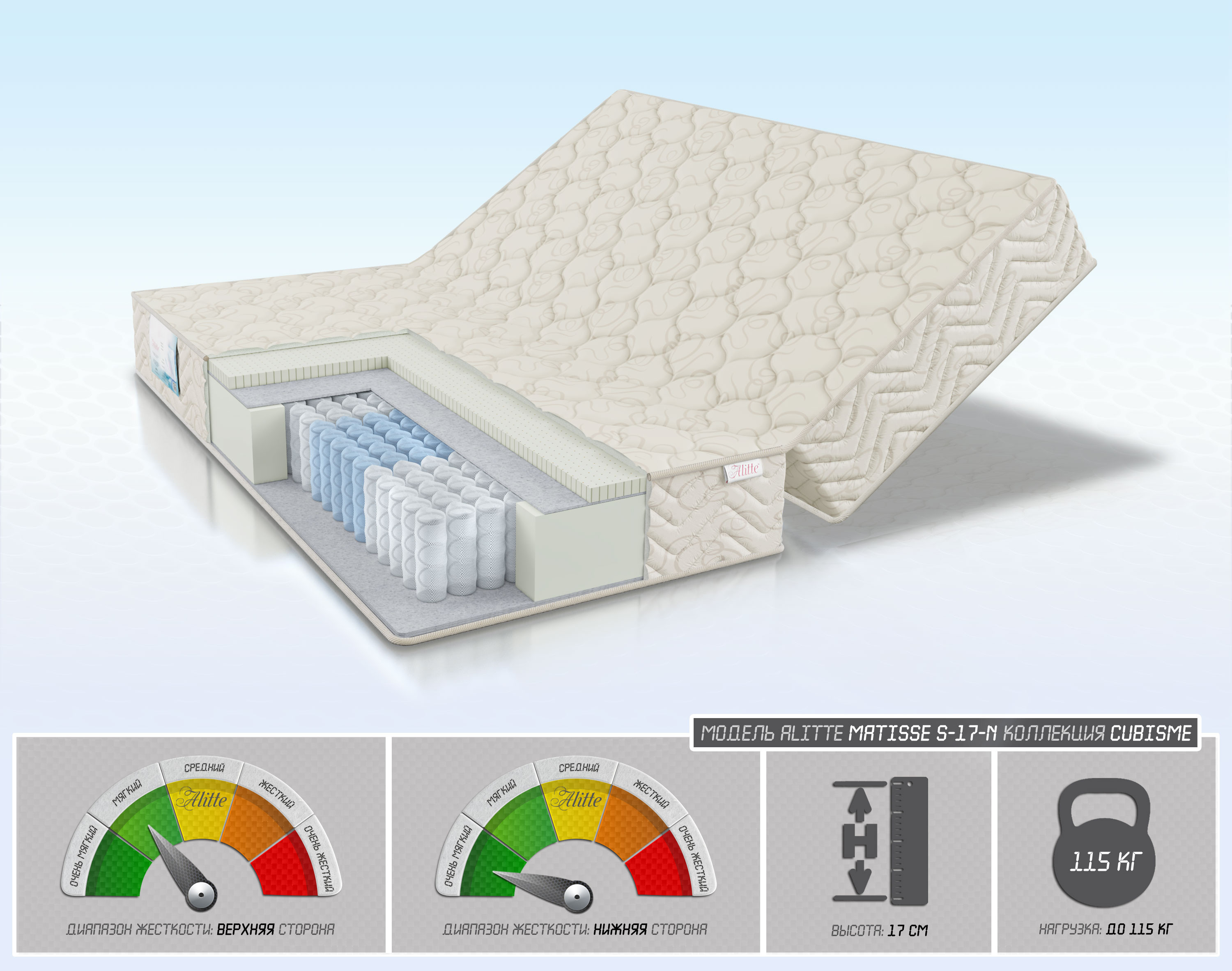 | Наполнение | Latex-3/войлок/TFK-14(5 зон)/войлок/войлок/ | |