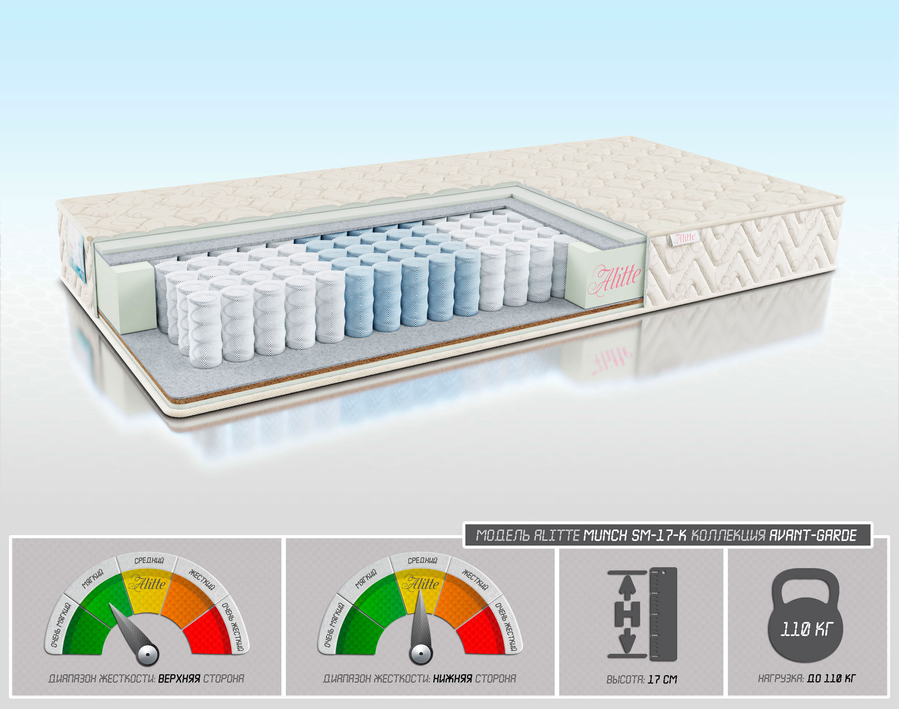 | Наполнение | Latex-Foam-1/войлок/TFK-14(5 зон)/ войлок/Cocos-1/Latex-Foam-1 | |