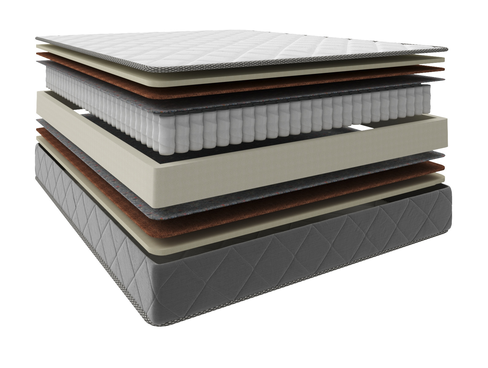 | Наполнение | ППУ 2 см., кокосовая койра 1 см., войлок, пружинный блок TFK (256пр./кв.м.), войлок, кокосовая койра 1 см., ППУ 2 см., короб ППУ | |