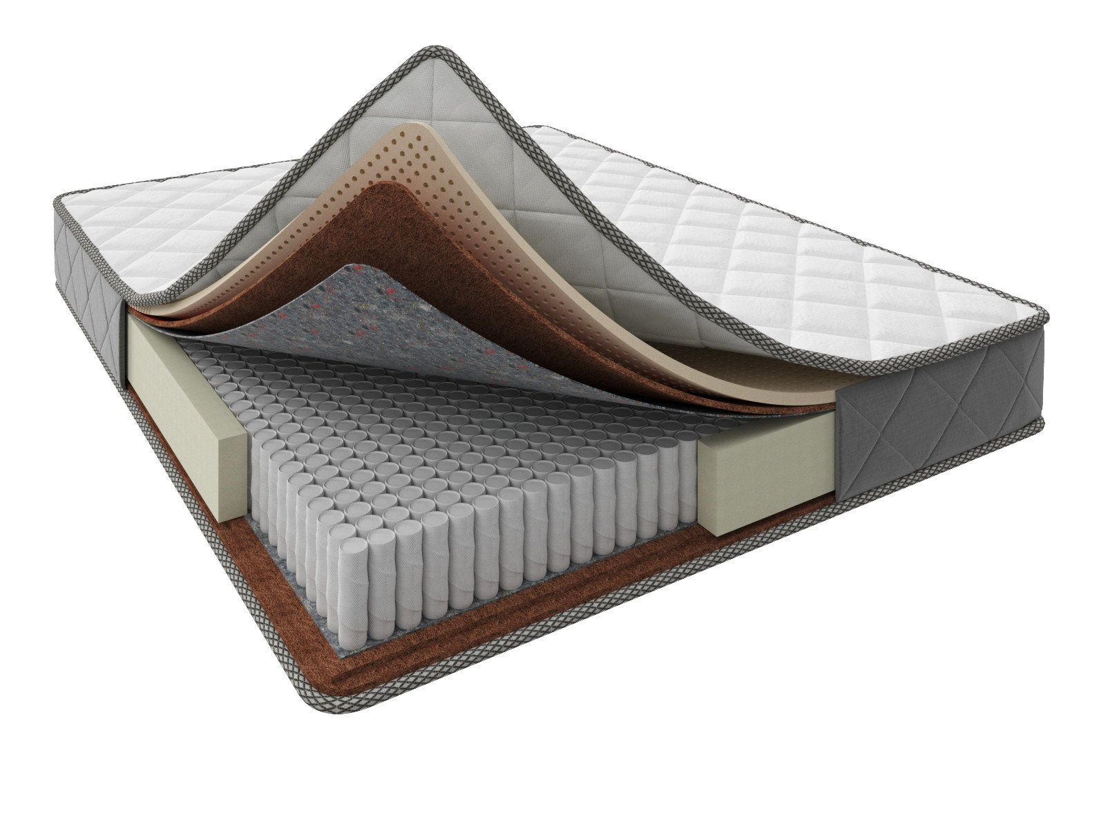 | Наполнение | натуральный латекс 2см., кокосовая койра 1 см., войлок, пружинный блок S1000 (510 пр./кв.м), войлок, кокосовая койра 2 см, короб ППУ | |